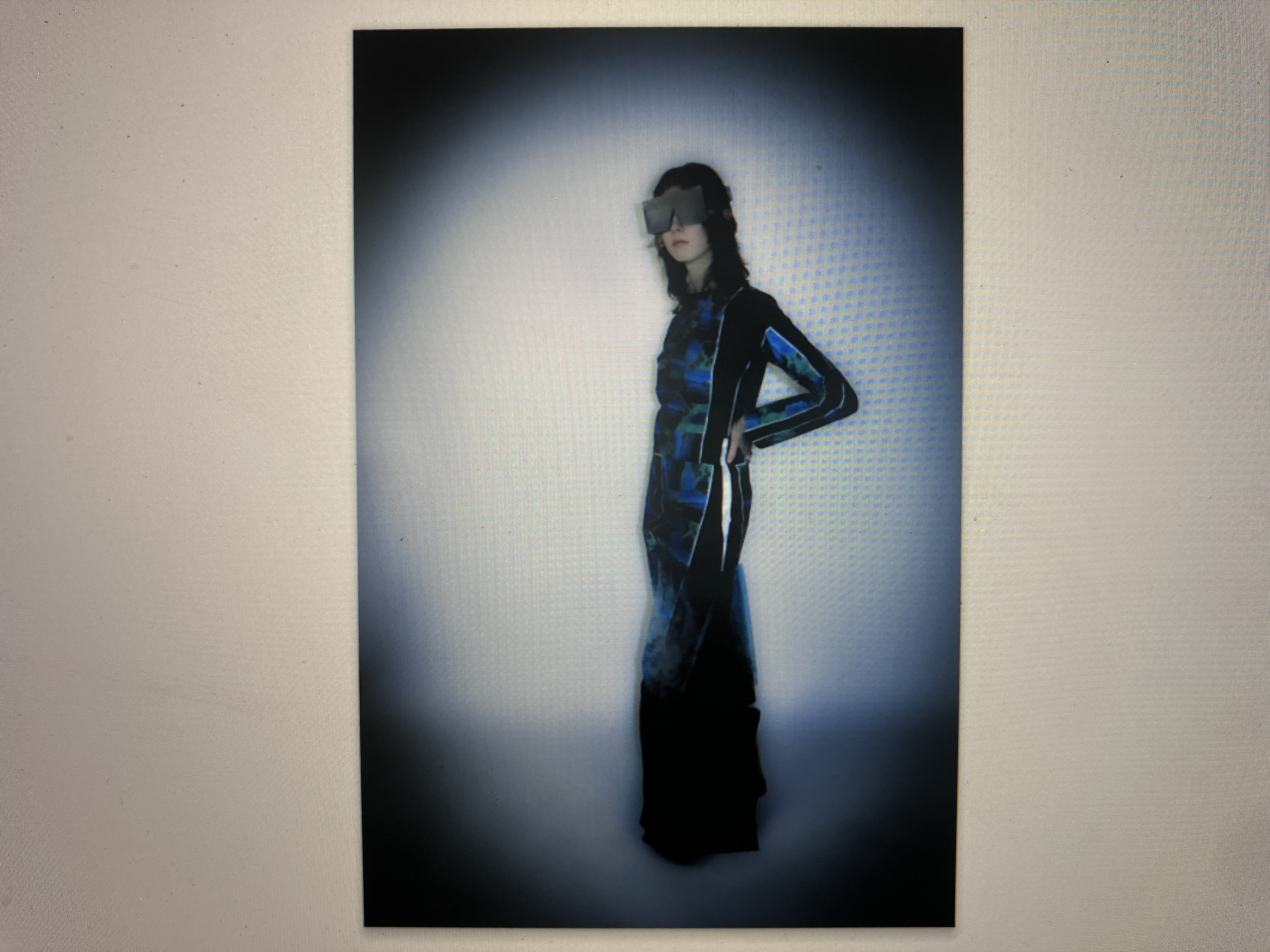 Discussing the climate emergency and rising sea levels, I am making proposals on how we will appear underwater. This piece engages and pictures a harsh close reality. Fully heat printed, the silhouette is made from my own footage.
